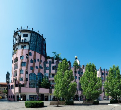 Das Hundertwasser-Projekt fügt sich in ein architektonisch einmaliges Ensemble mit dem gotischen Dom, dem romanischen Kloster und den barocken und klassizistischen Gebäuden des Landtages ein und bildet gleichzeitig einen Gegenpol zum benachbarten Bankgebäude und den umliegenden Bauten der Nachkriegsarchitektur.
