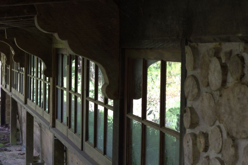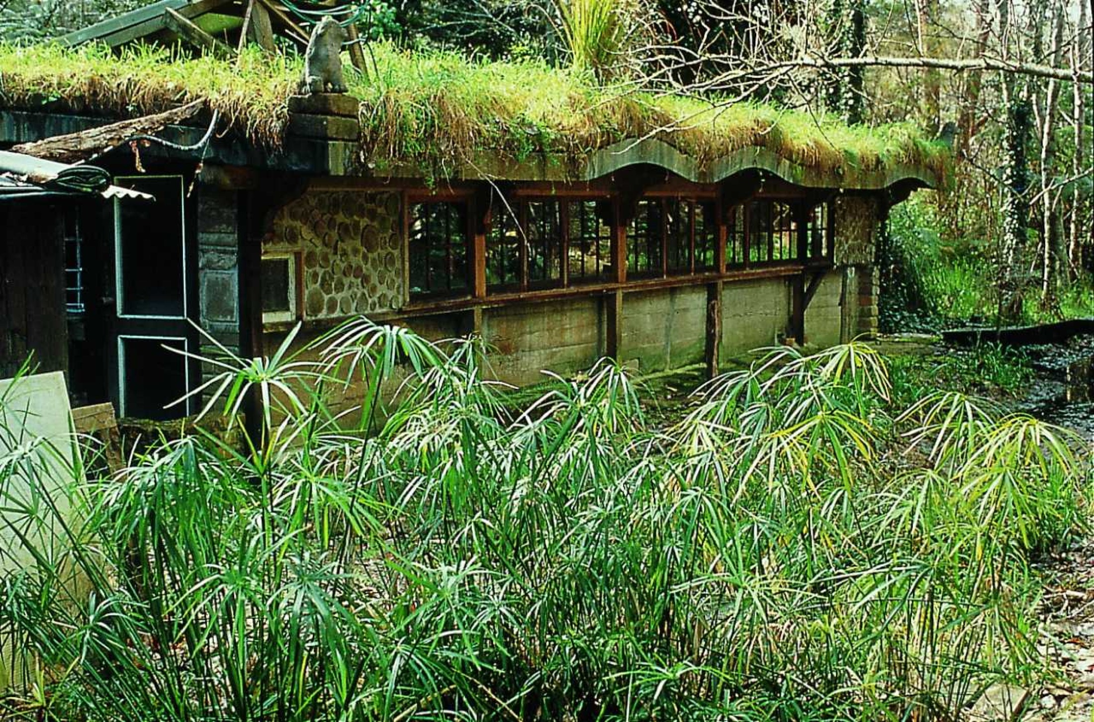 Der ehemalige Schweinestall (Pigsty) wurde 1994/95 mit Wänden aus Erdziegeln und Brennholzscheiben neu gestaltet.