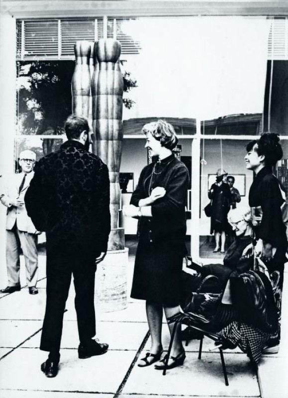 Die Aufnahme entstand vor dem österreichischen Pavillon, im Hintergrund die Bronzeskulptur Große Dreifigurengruppe von Joannis Avramidis.