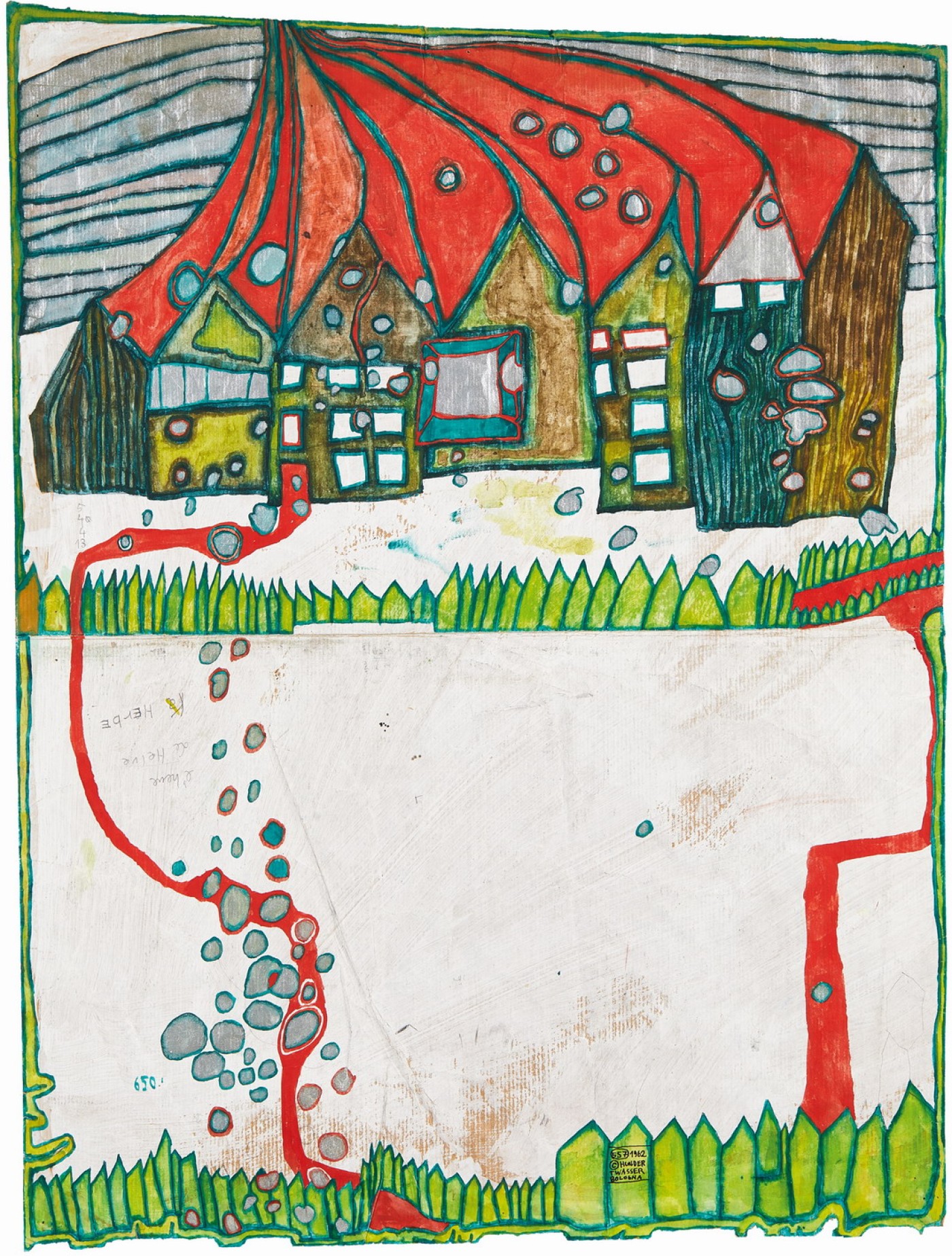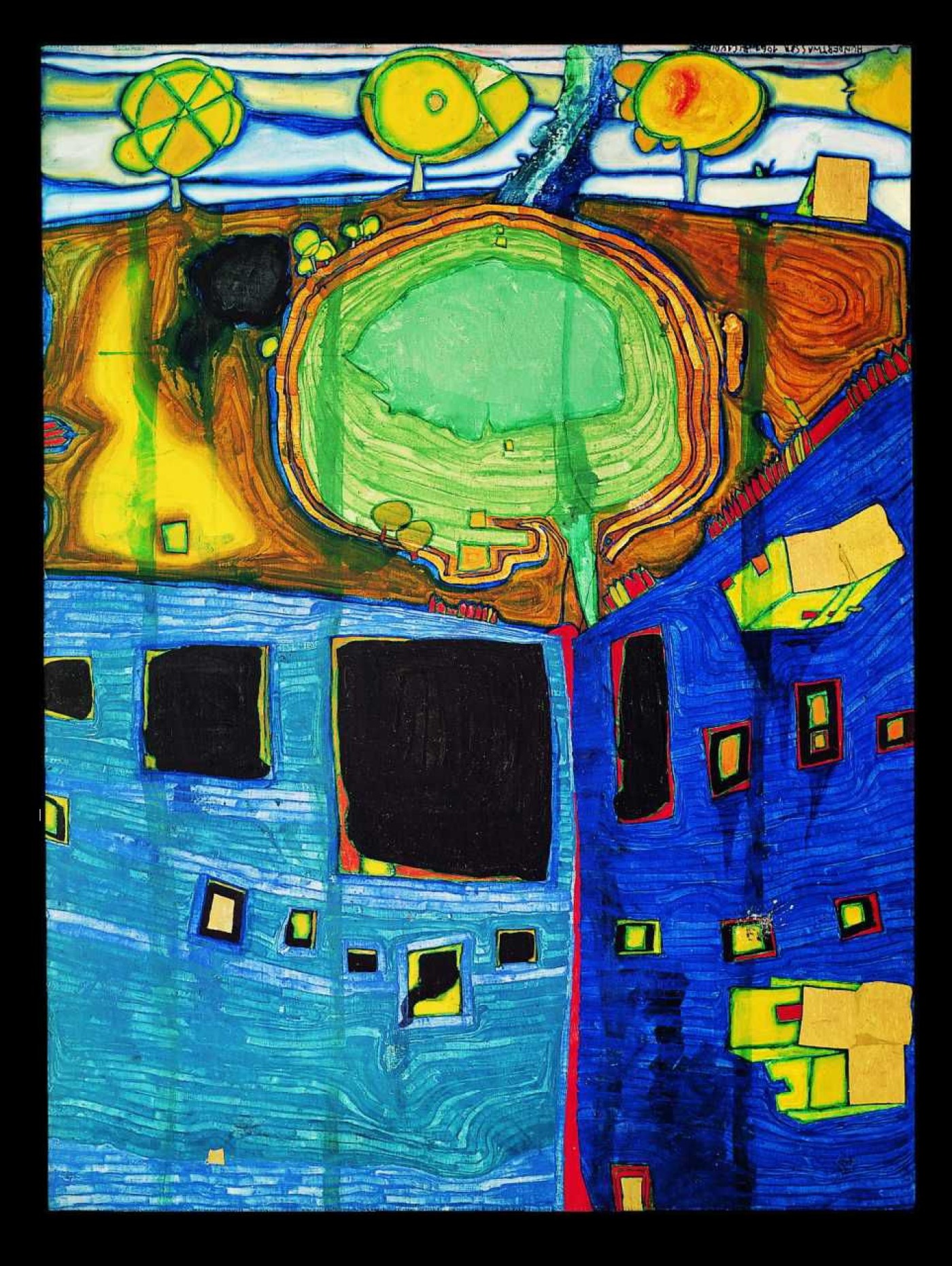 Hundertwasser's commitment to a more human architecture in harmony with nature and his visionary ecological commitment developed from his belief in the power of nature and individual creativity. Since the 1980s, he has been realizing architectural projects in which there is the window right and tree tenants, the uneven floor, forests on the roof and spontaneous vegetation. His buildings testify to his commitment to diversity instead of monotony, for romanticism, for the organic and for unregulated irregularities, for spontaneous vegetation and for living in harmony with nature.