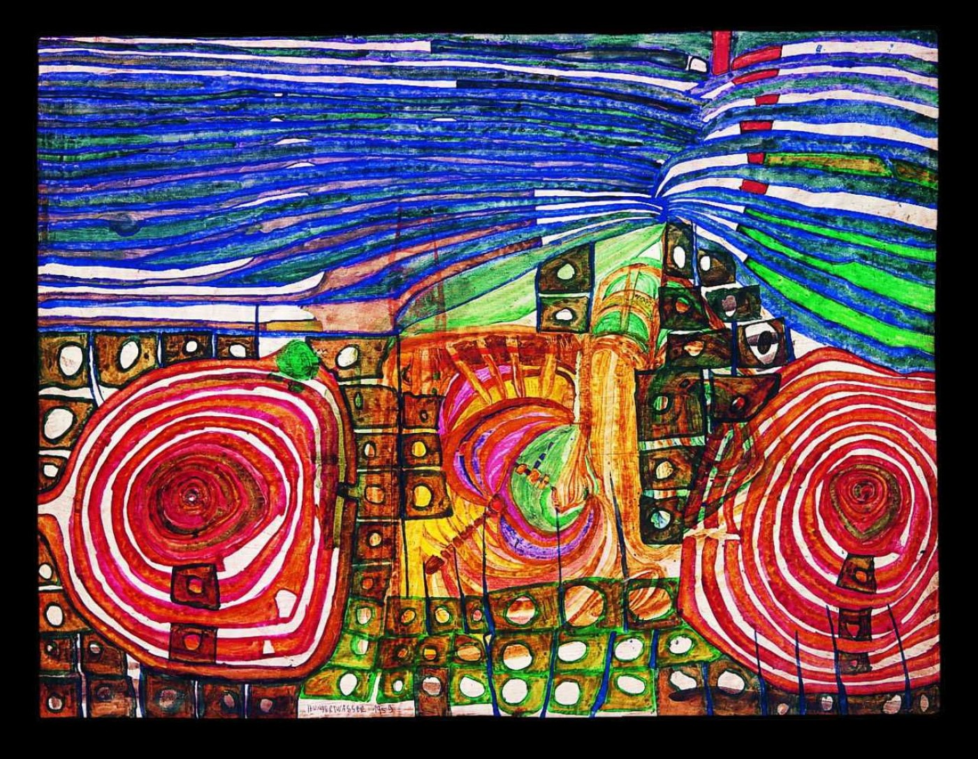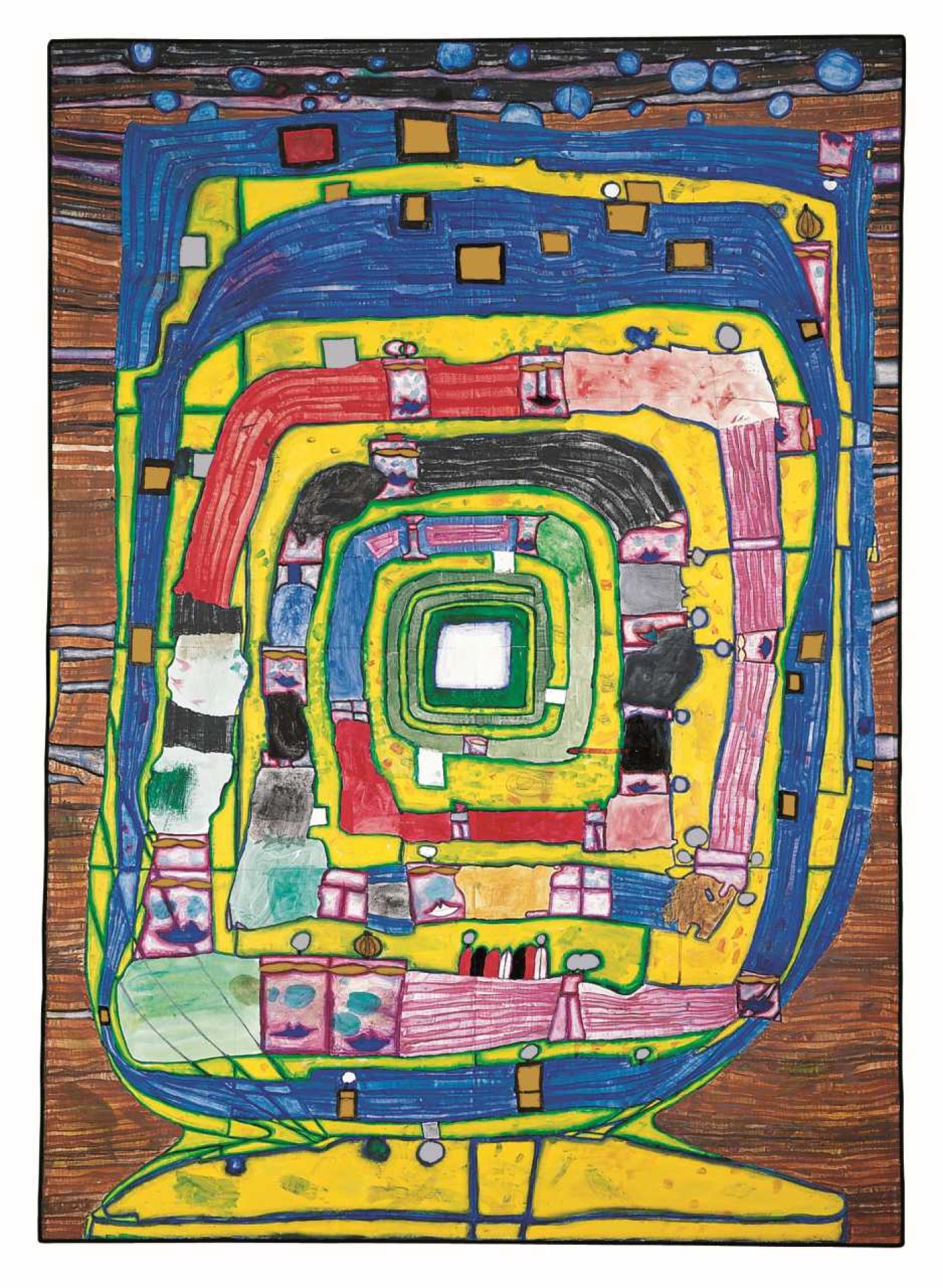 The work of Friedensreich Hundertwasser (born Friedrich Stowasser in Vienna) is one of the most important contributions in the art history of post-war modernism. As an important member of the international avant-garde in Paris in the 1950s, he developed his unique visual language. One of the central motifs of his colorful picture world is the spiral.