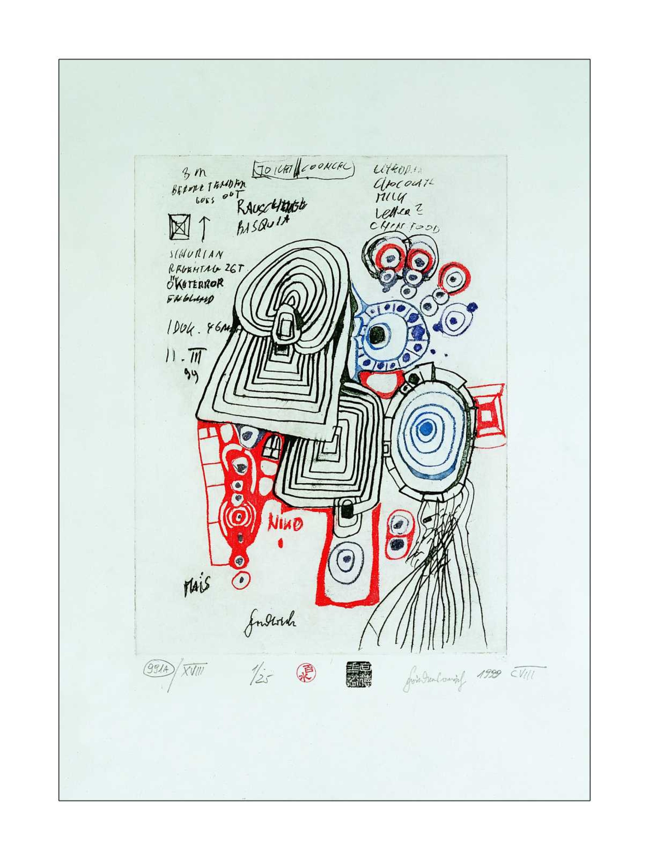 Farbradierung mit Aquatinta in 4 Farben aus 3 PlattenNach Doodle 991/CVIII